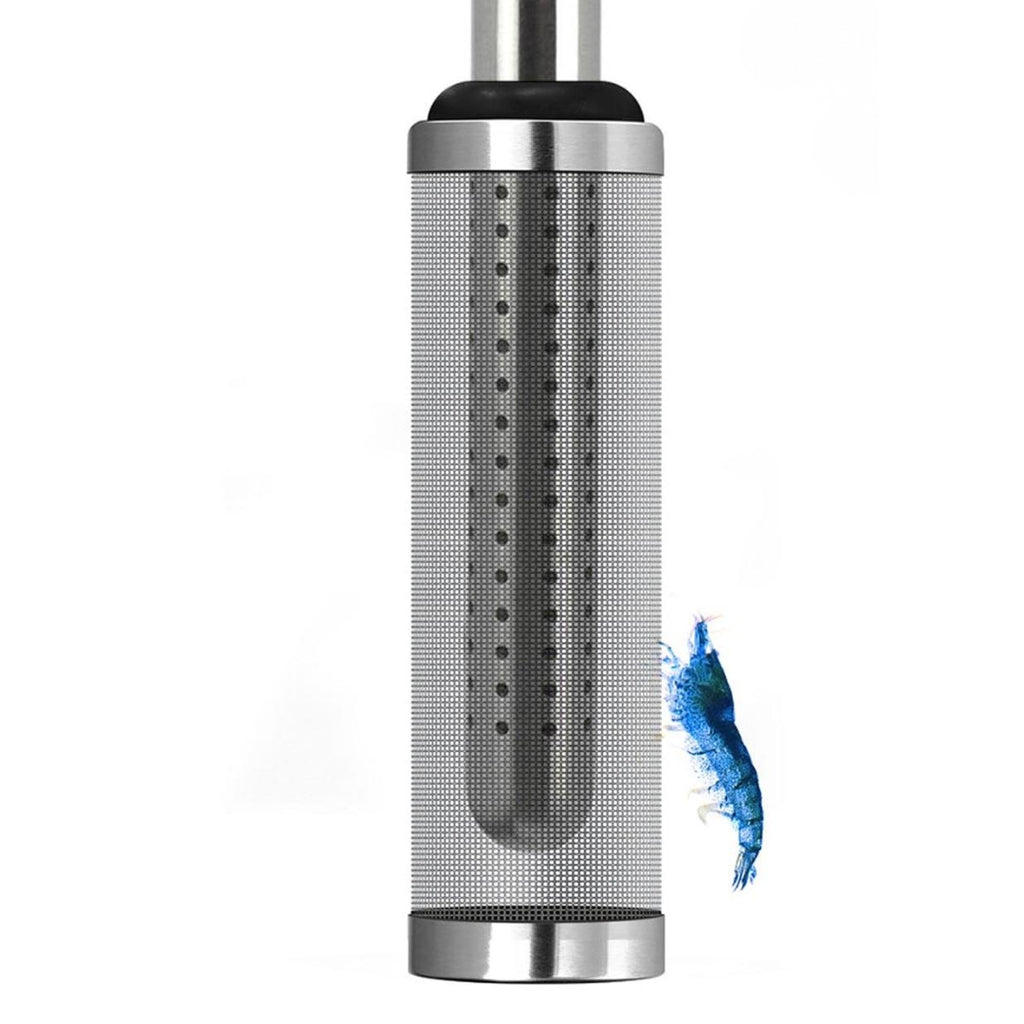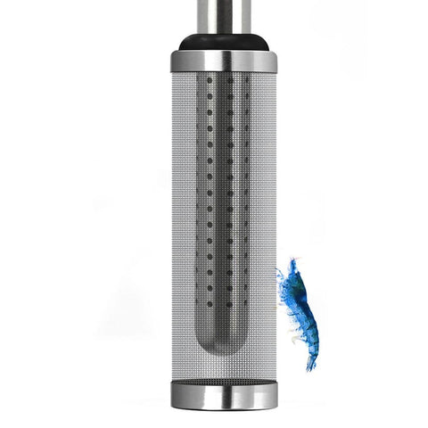 Coladera de malla fina en acero inoxidable grado quirúrgico, diseñada para proteger gambitas, alevines y peces pequeños al evitar su aspiración por el filtro. Compatible con sistemas canister de agua dulce y especialmente con el Aquavitro® Intake Pipe. Su estructura soldada en una sola pieza garantiza durabilidad y flujo constante, resistente al óxido y la corrosión.