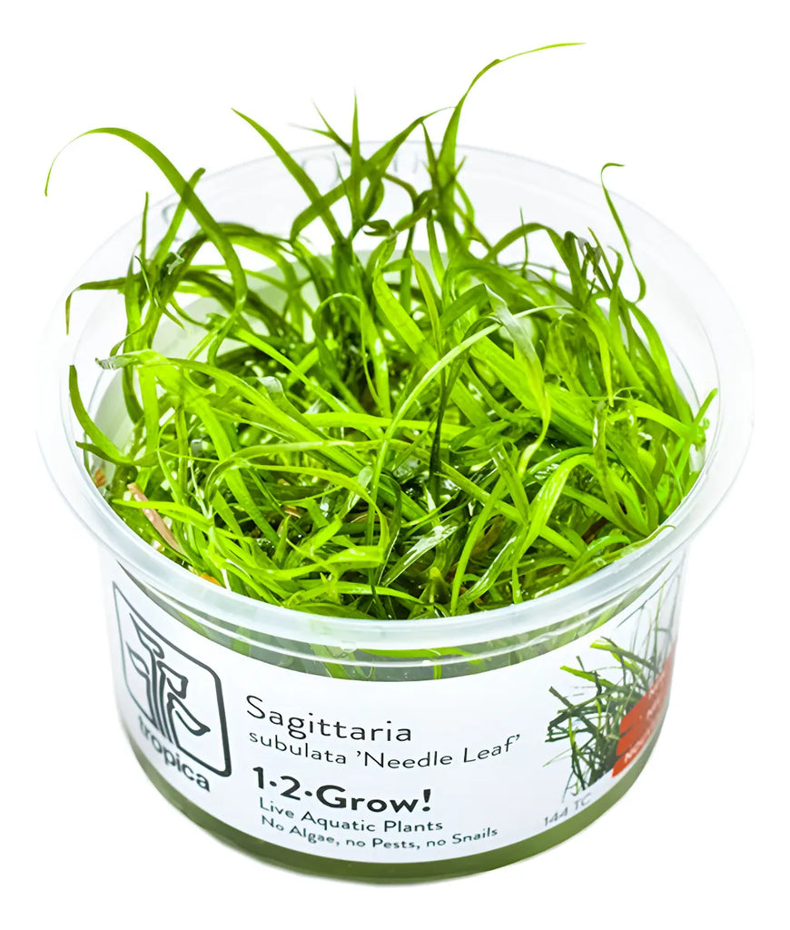 Sagittaria sp. Needle es una impresionante planta acuática de hojas estrechas, probablemente una variante de la Sagittaria subulata. Con hojas delgadas que alcanzan entre 15 y 30 cm de largo y tan solo unos milímetros de ancho, esta planta aporta un toque delicado y elegante a cualquier acuario de agua dulce.