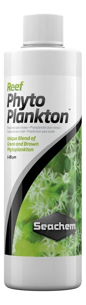 Seachem Reef Phytoplankton es un alimento líquido concentrado a base de fitoplancton marino verde y marrón, formulado para nutrir corales, invertebrados y organismos filtrantes en acuarios marinos y de arrecife.