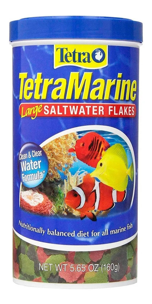 Tetra Marine Flakes 160 g es una formulación de hojuelas diseñada especialmente para acuarios marinos con peces pequeños y medianos. Esta mezcla equilibrada está desarrollada científicamente para aportar los nutrientes, vitaminas y ácidos grasos esenciales que ayudan a mantener un comportamiento activo, colores intensos y una salud vibrante en tus especies marinas favoritas.