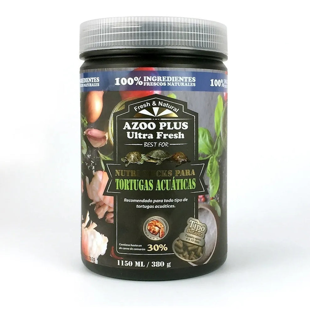 Ultra Fresh Nutri Sticks es un alimento premium en pellets grandes especialmente formulado para tortugas acuáticas, diseñado para cubrir sus necesidades nutricionales diarias de forma completa y balanceada.